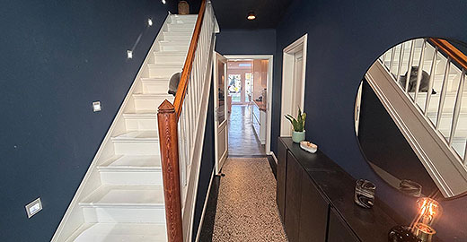 Das Mittelreihenhaus mit seinem ca. 167 m² grossen Grundstück liegt inmitten der populären Steenkampsiedlung. Es bietet einer kleinen Familie ausreichend Platz. Das Haus wurde sukzessive instand gehalten. Das Dachgeschoss wurde zu einem luftigen Raum mit herrlichem Weitblick in die umliegenden Gärten ausgebaut.